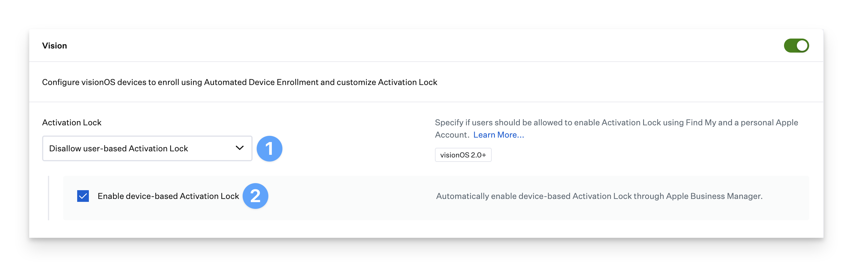 Customize the setup experience and configuration for visionOS devices.Configure user-based Activation Lock