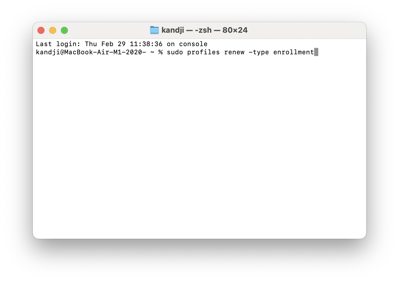 If a Mac has already passed through Setup Assistant without enrolling, it is still possible to enroll it into Iru Endpoint. Please follow the steps below to enroll your device.Open Terminal