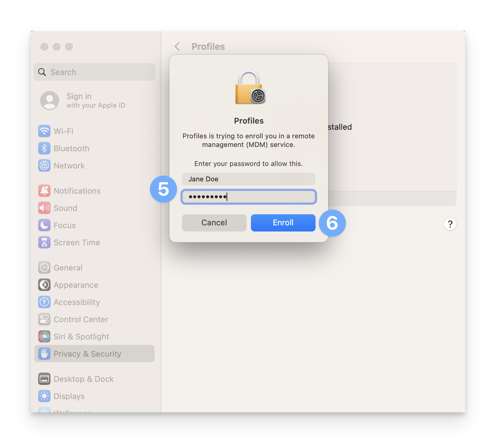 Go to Settings > General > VPN & Device Management (iOS/iPadOS) or System Preferences > Profiles (macOS) and tap Trust for the management profile