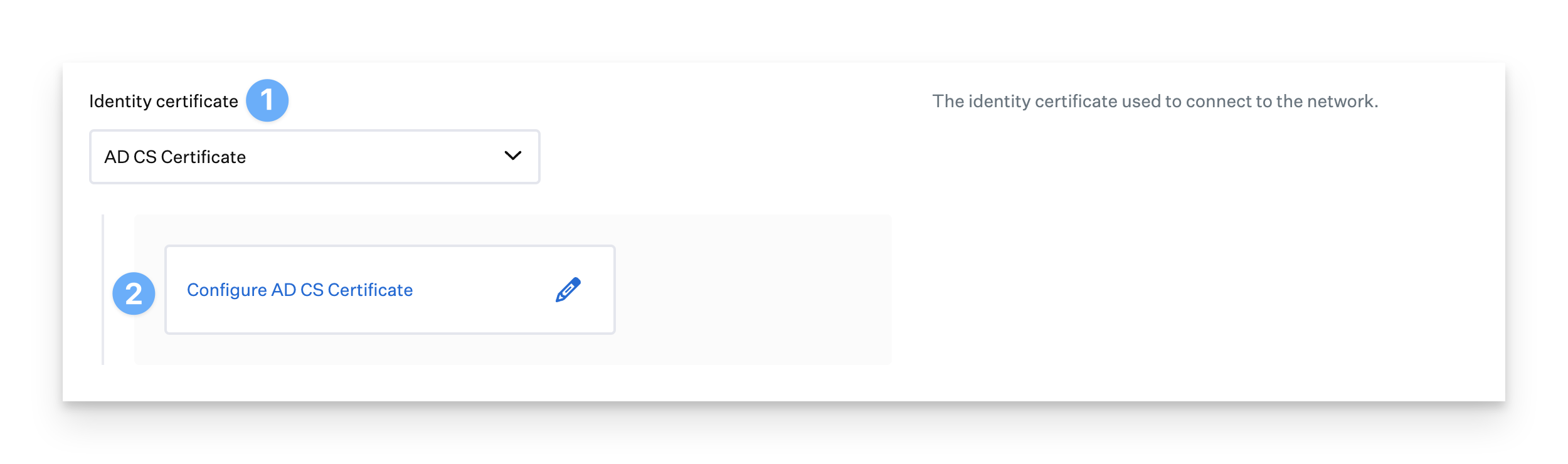 If you wish to have the client device acquire an identity certificate from AD CS, choose AD CS Certificate for Identity certificate.