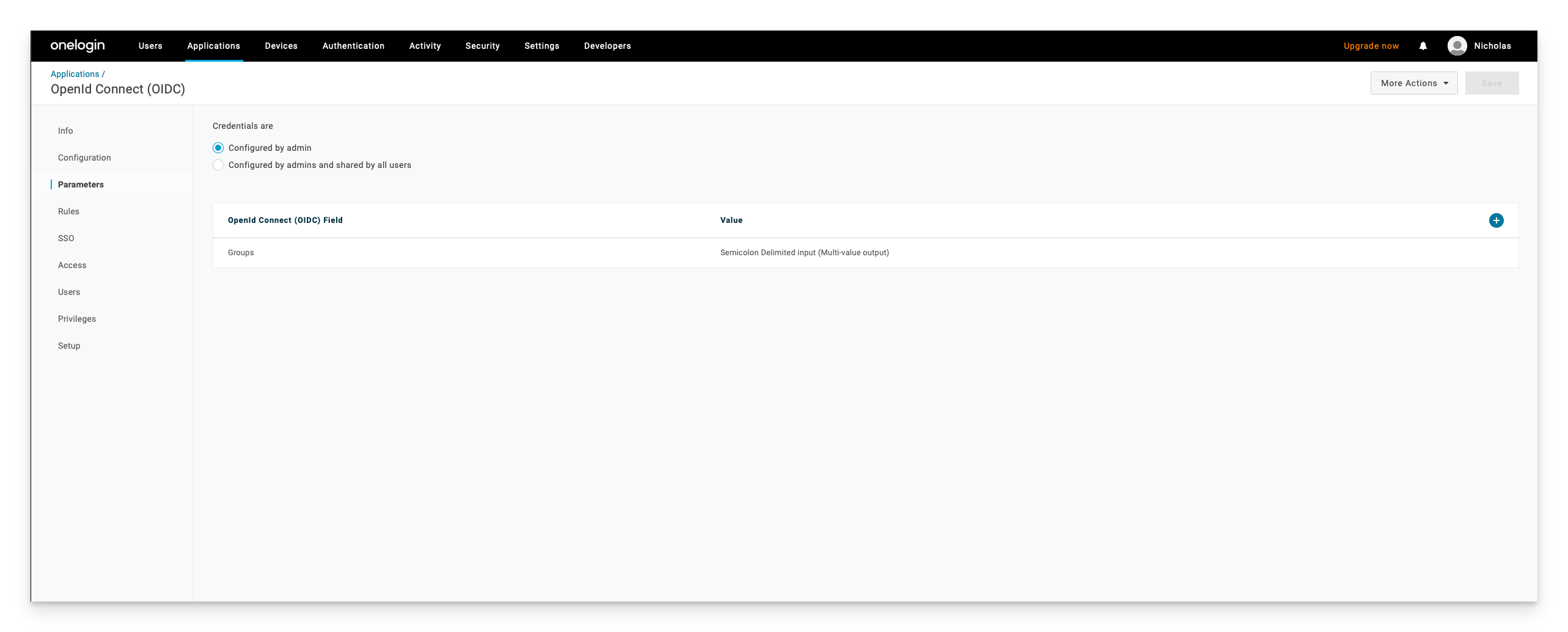 Next, navigate to the Iru Passport app that you created in OneLogin. Select the parameters link and click on the Groups field.