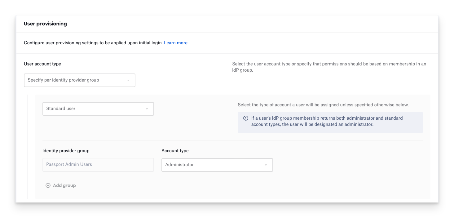 Configuring a User Account Type by Identity Provider Group in OneLogin