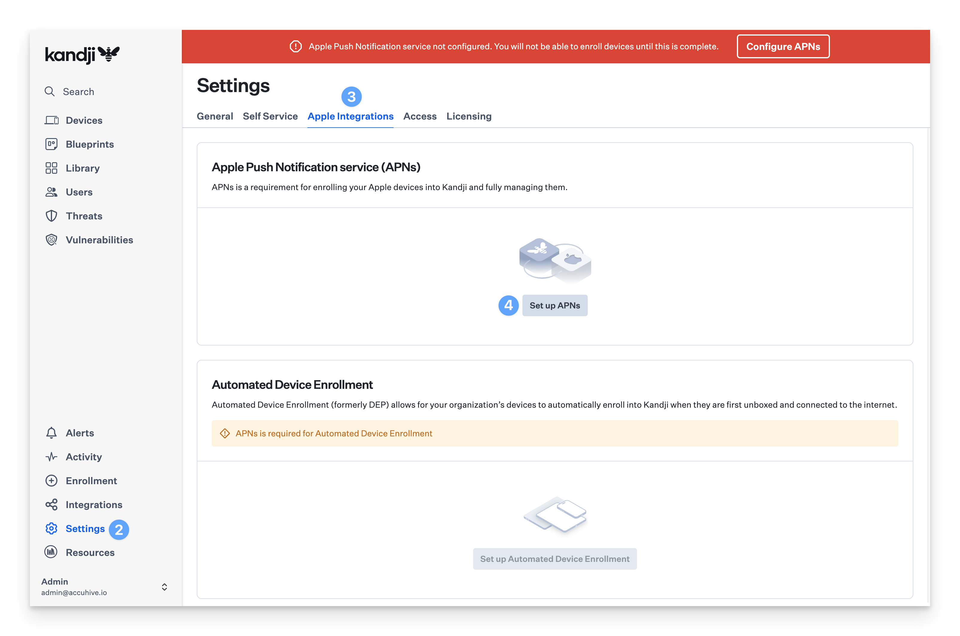 Under Apple Push Notifications service (APNs), click Set up APNs.