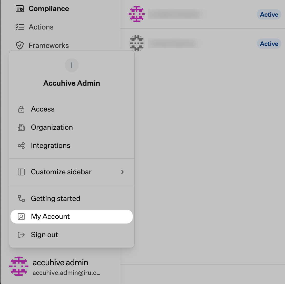 Admins and Account Owners can send authentication registration requests to users so they can register a passkey.Navigate to the Account Menu Button